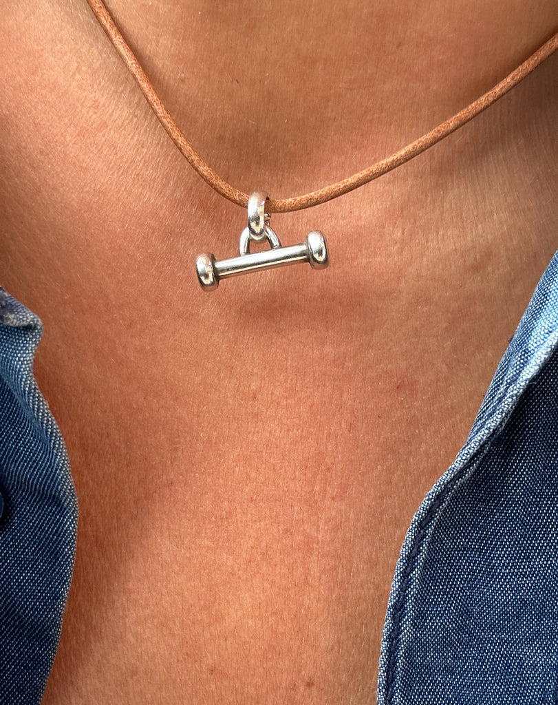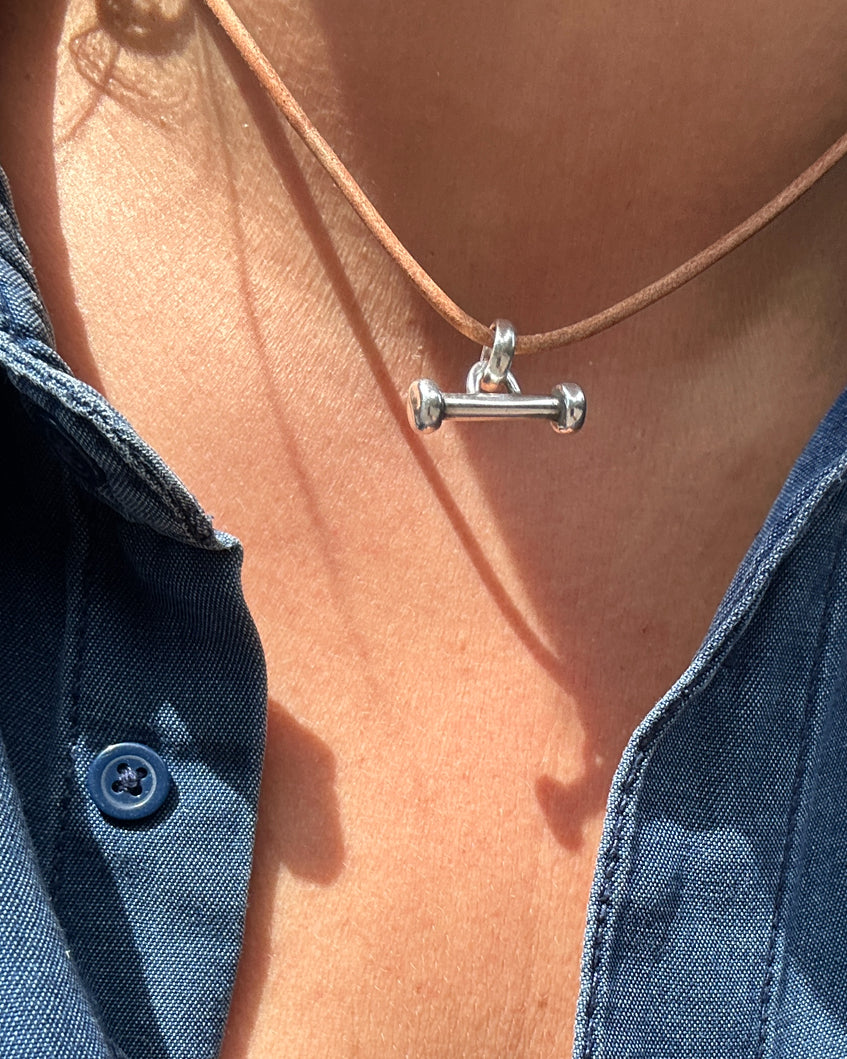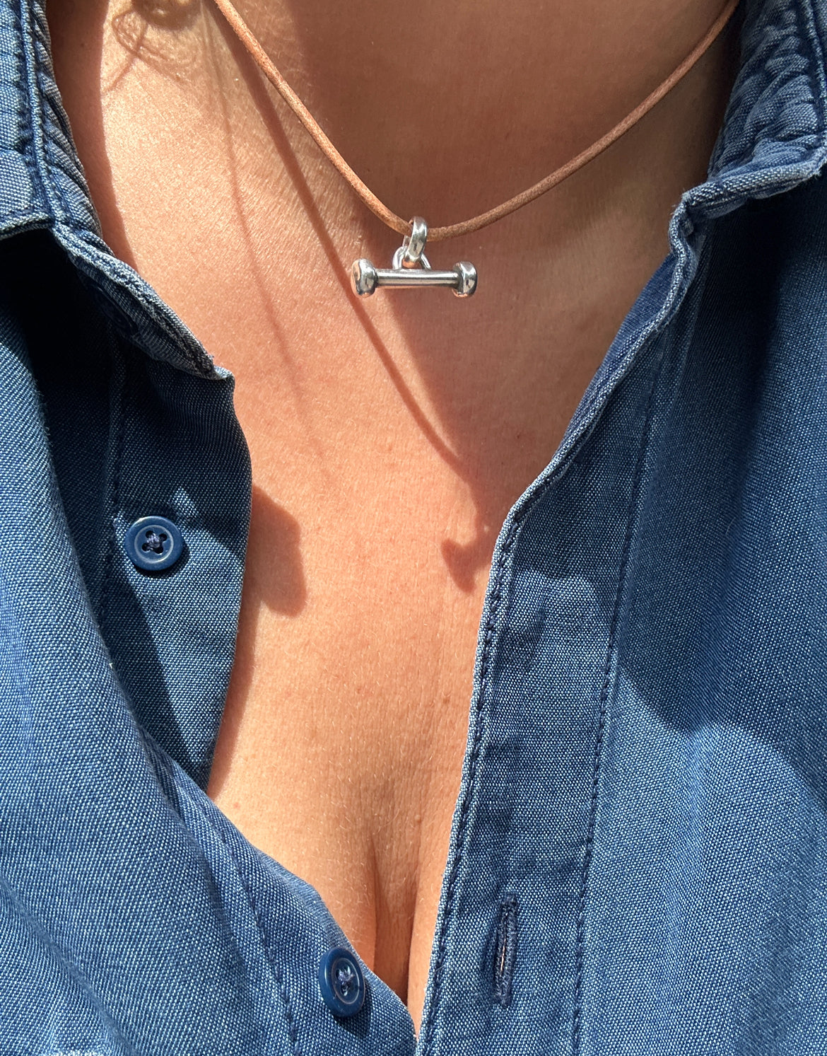 At 16 inches with a 2-inch extender, it sits neatly at the collarbone, making it perfect for layering with longer chains or wearing solo for a simple, unfussy look. The supple leather cord gives it a natural, easygoing style, while the T bar charm adds a contemporary touch.