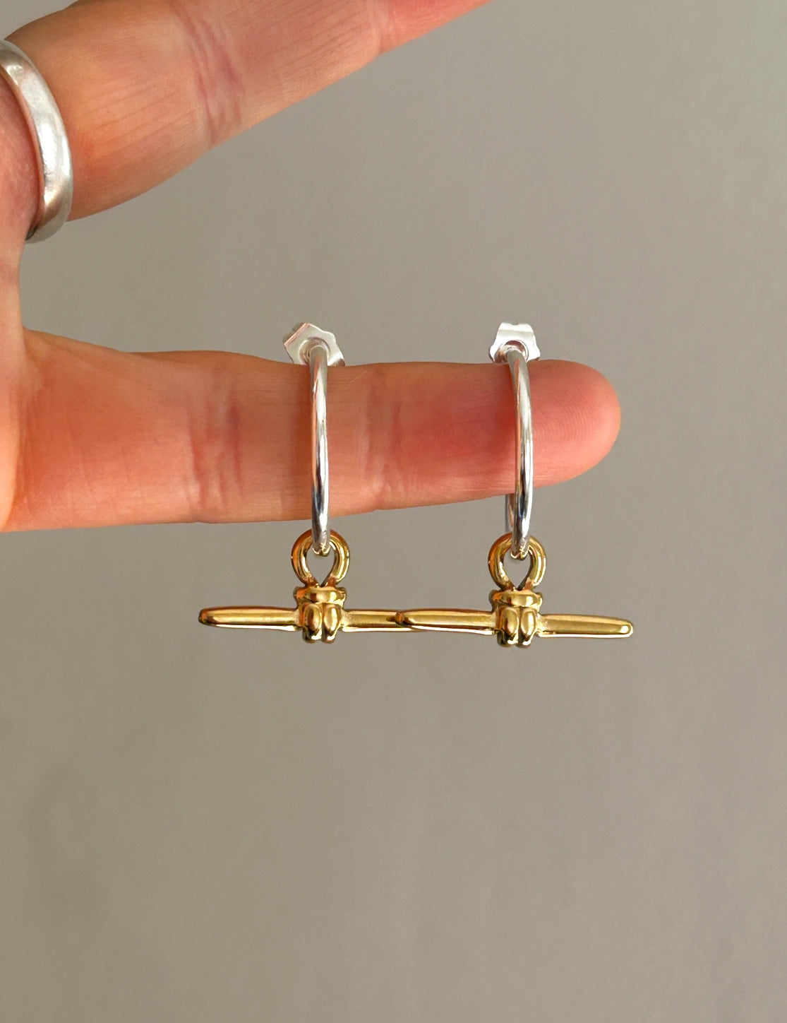 ▪️Silver-plated 20mm hoops with gold-plated T bar drops